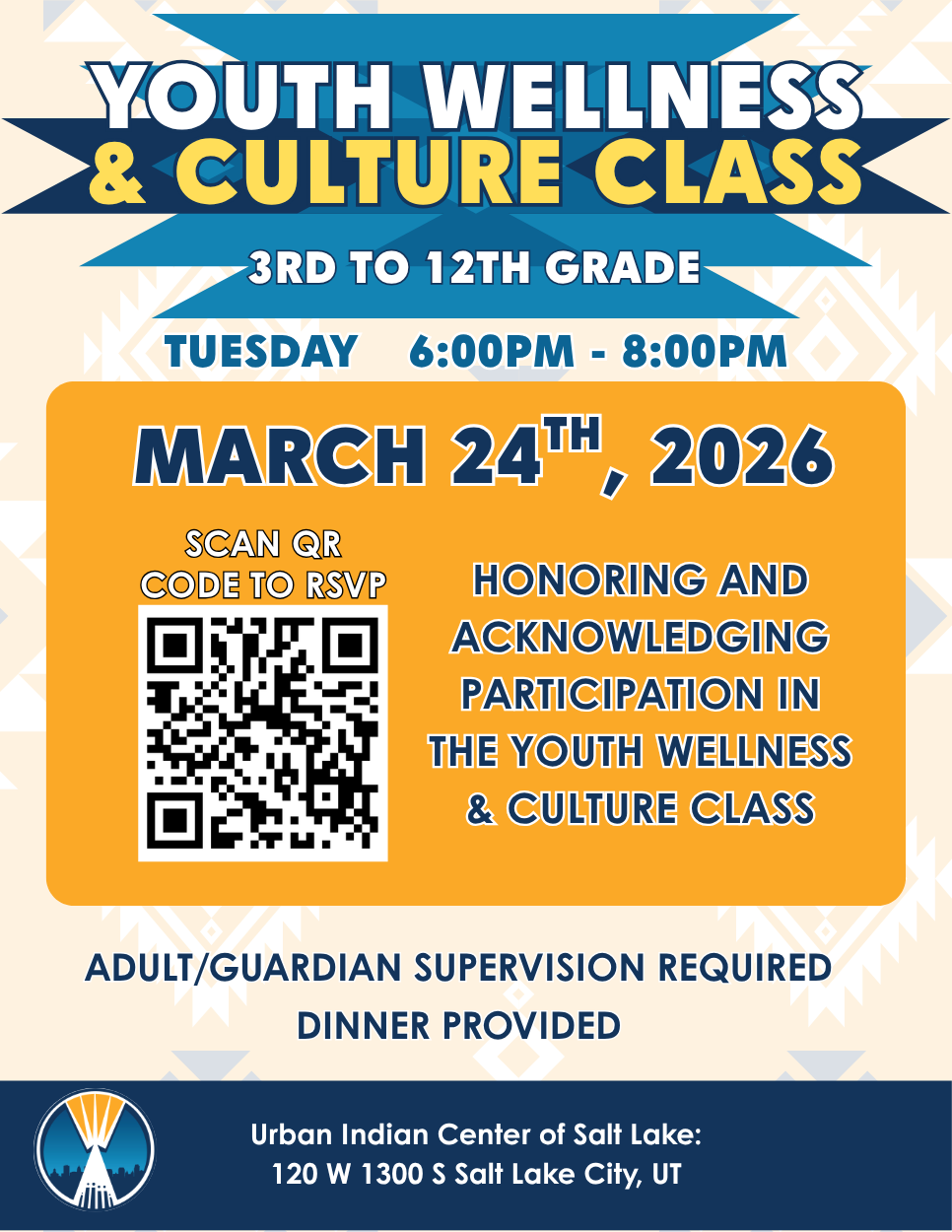We are excited to invite our 3rd through 12th-grade students to a special session of our Youth Wellness & Culture Class, Tuesday, March 24th. This week’s gathering is dedicated to honoring and acknowledging the participation of our youth in the program.