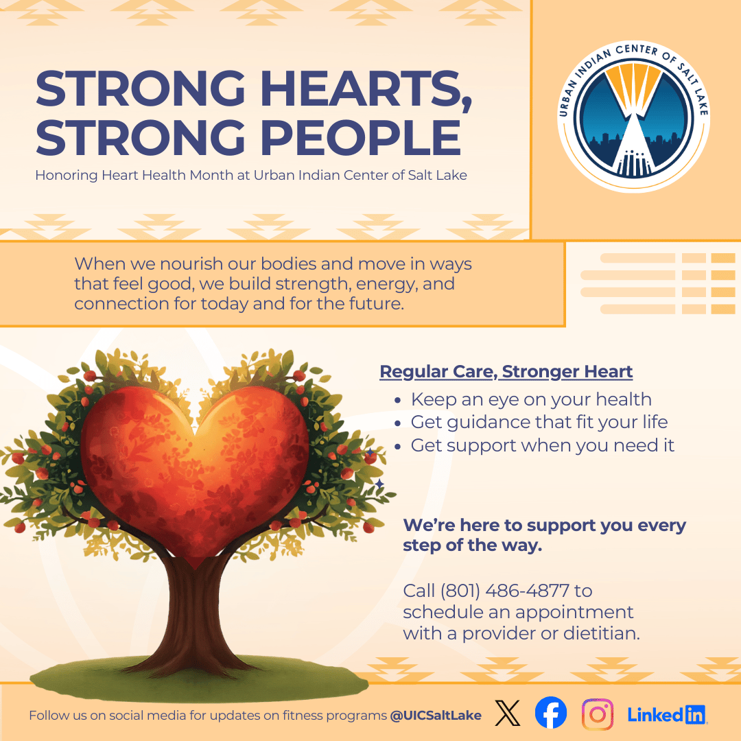 February is Heart Health Month, we celebrate the strength and resilience of our community. Caring for your heart is not just a personal choice it is a way to protect the people and traditions you love. Every step matters. Moving our bodies, choosing nourishing foods, and keeping up with regular checkups all make a difference. Together we can lift each other up, honor our ways, and live healthier fuller lives.
