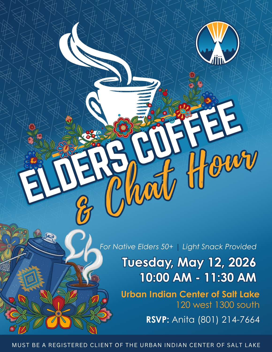 Urban Indian Center Of Salt Lake - Main Building 120 w 1300 s, salt lake city, UT, United StatesJoin Us for Elders Corner Meetings in May! We are pleased to invite our Native Elders (age 50+) to the upcoming "Elders Corner" meetings at the Urban Indian Center of ... Read more